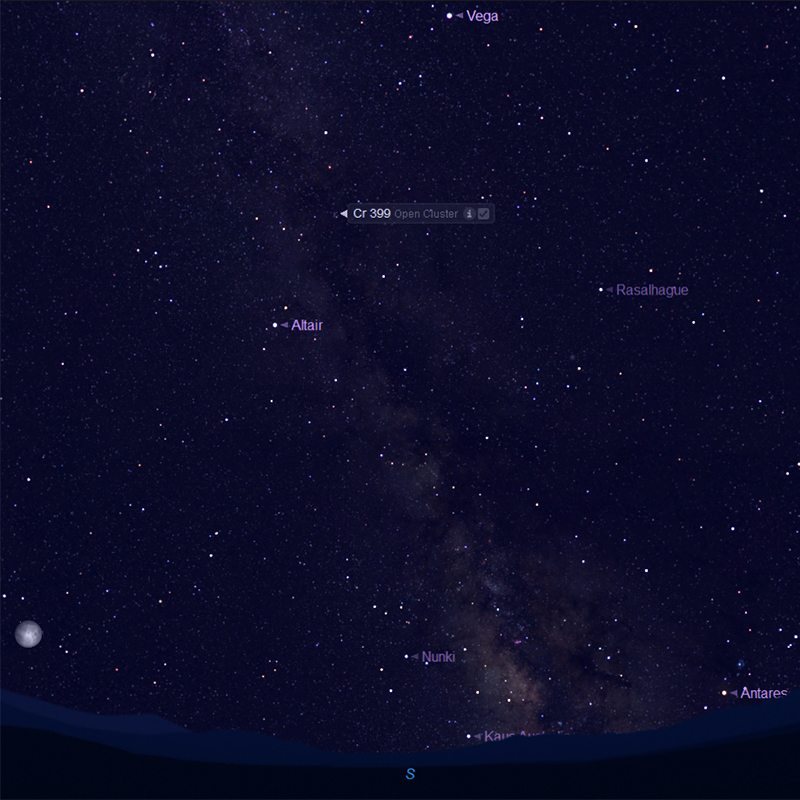 Brocchi's Cluster, also known as Cr399 has given rise to the name as the 'Coathanger', due to the members of the star cluster forming this shaped asterism.