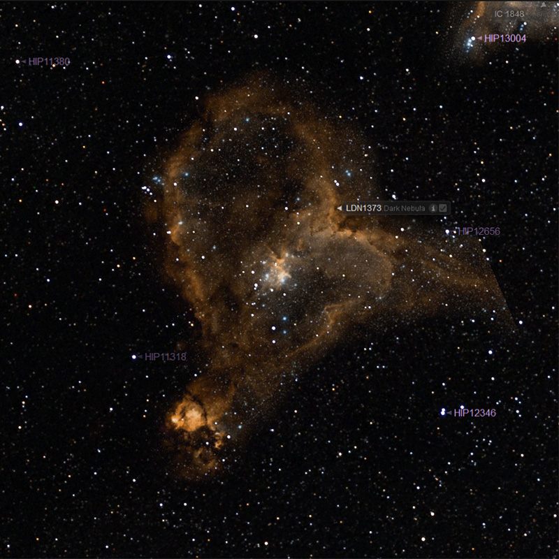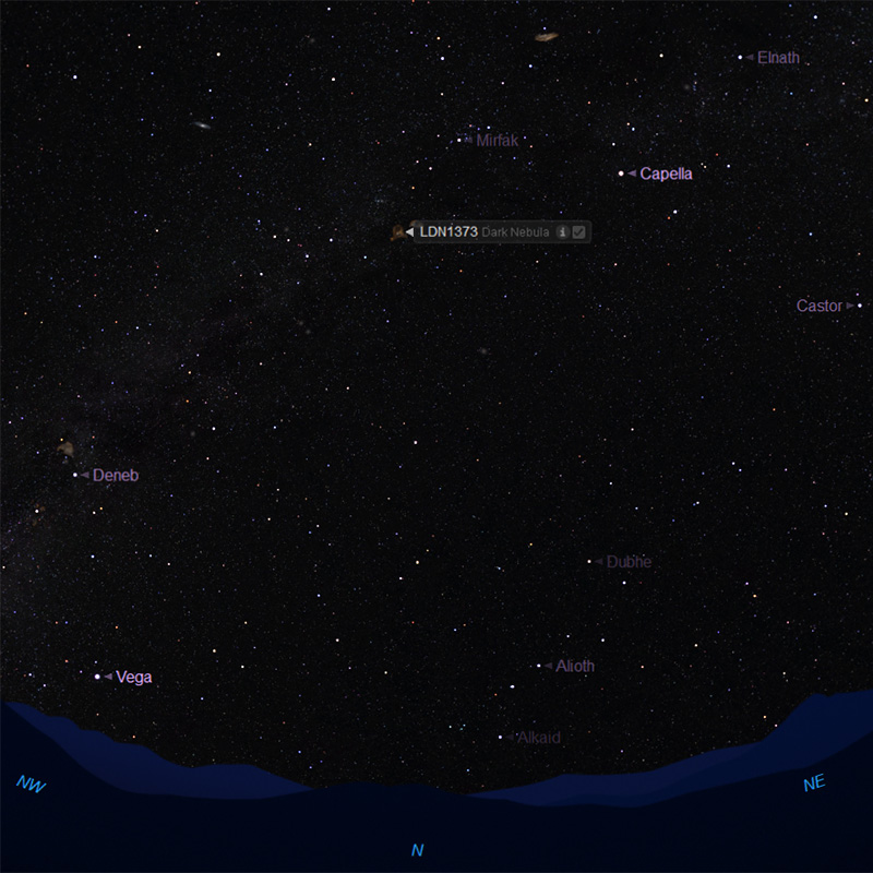 LDN1373 is a nebula of dust and gas. dark nebula have a higher concentration of dust, which blocks almost all of the light from background stars, making this region of the sky dark and featureless.
