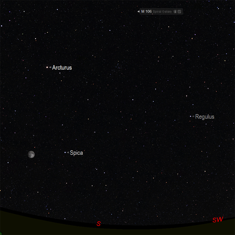 Although a larger telescope is needed to resolve detail, M106 has a relatively bright apparent magnitude of 9.1 and can be spotted with a small telescope. It is best observed during May.