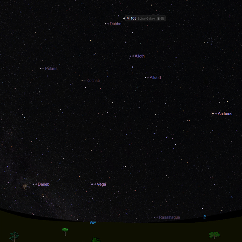 The best time of year to observe M108 is during the spring. The galaxy is circumpolar north of latitude 35N and can be seen throughout the year.